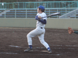 3回満塁から同点!2度目の死球大当たりナベ。第2写真(画面にカーソル):センターへ逆転打オサム。ランナーセカンドフォースアウトのため記録はヒットならず